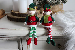 Το καθιστικό ξωτικό θα σας κερδίσει με την χαριτωμένη εμφάνισή του. Όταν κάθεται, τα πόδια του είναι ελεύθερα. Το καπέλο είναι διακοσμημένο με ένα κουδουνάκι. Θα ξεχωρίζει σε ένα ράφι, τραπέζι, σκάλα ή ακόμα και σε ένα τζάκι. Το ύψος του καθισμένου ξωτικού είναι περίπου 12 - 13 cm.