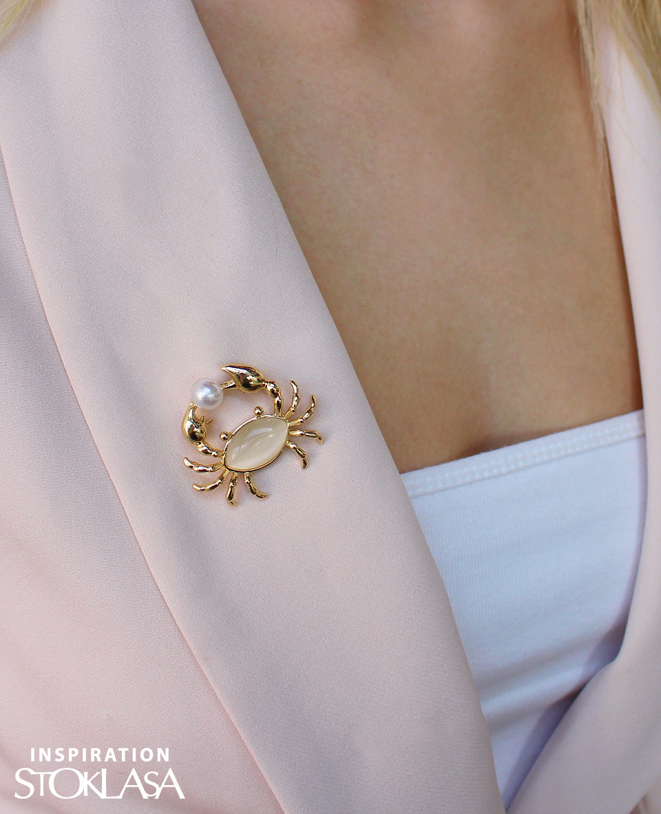 Καρφίτσα Νο. 1 - μέλισσα με διαστάσεις 3,2 x 4,5 εκ. Είναι διακοσμημένη με λαξευμένες πέτρες. Καρφίτσα Νο. 2 - καβούρι διαστάσεων 3,5 x 3,5 εκ. Είναι διακοσμημένη με ένα μαργαριτάρι και μια πέτρα με εφέ ματιού γάτας. Καρφίτσα αρ. 3 - αλεπού διαστάσεων 2,8 x 3 εκ. Είναι διακοσμημένη με λαξευμένες πέτρες. Καρφίτσα Νο. 4 - πασχαλίτσα με διαστάσεις 2,8 x 2,8 εκ. Είναι διακοσμημένη με λαξευμένες πέτρες.