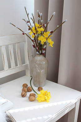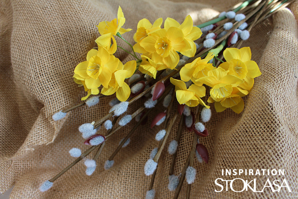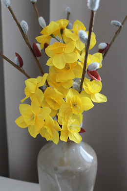Ο τεχνητός νάρκισσος φαίνεται υπέροχος σε ένα βάζο, αλλά μπορείτε επίσης να τον ενσωματώσετε σε στεφάνια, συνθέσεις λουλουδιών ή ikebana. Υπάρχουν 5 υφασμάτινα λουλούδια σε ένα στέλεχος, στο εσωτερικό του οποίου υπάρχει ένα σύρμα.