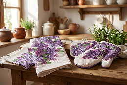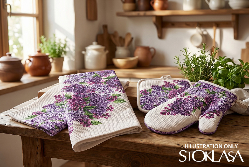 Το πικέ βάφλας με μοτίβο λιλά είναι ιδανικό για ράψιμο πετσετών κουζίνας, σουπλών, πετσετών ή σουπλών. Το υλικό είναι ανθεκτικό, εύκολο στη φροντίδα και εξαιρετικά απορροφητικό χάρη στη βάφλα δομή του. Το σχέδιο είναι με ένα ατελείωτο μοτίβο.